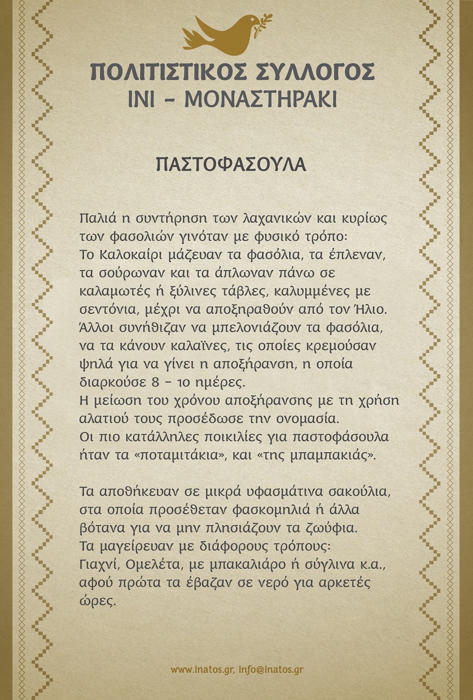 Ο Πολιτιστικός Σύλλογος Ίνι – Μοναστηράκι «Ίνατος» πήρε μέρος στον διαγωνισμό παρασκευάζοντας «παστοφάσουλα με μπακαλιάρο»